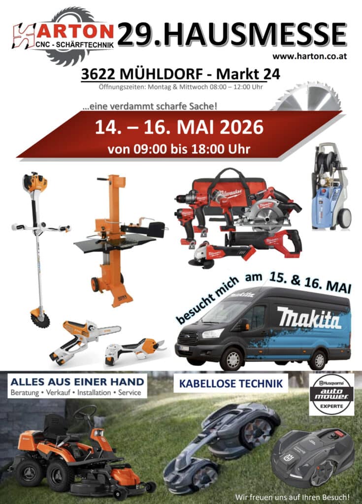 Begonnen hat der Großvater des heutigen Firmenchefs mit dem Wandergewerbe der Sägenfeiler. Der Vater baute die Werkstätten für Schärfmaschinen und Motorsägen. Seit 1986 wird das Unternehmen von Johann Harton bereits in der dritten Generation geführt. Unter seiner Führung wurde das Unternehmen laufend erweitert und der Maschinenpark auf neuesten Stand gebracht.